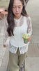 A refined lace top designed with delicate texture and understated elegance. Crafted from intricate lace fabric, it features a clean round neckline, subtle front buckle fastening, and softly flared sleeves. Available in sizes S, M, and L, and in multiple colours for versatile styling.