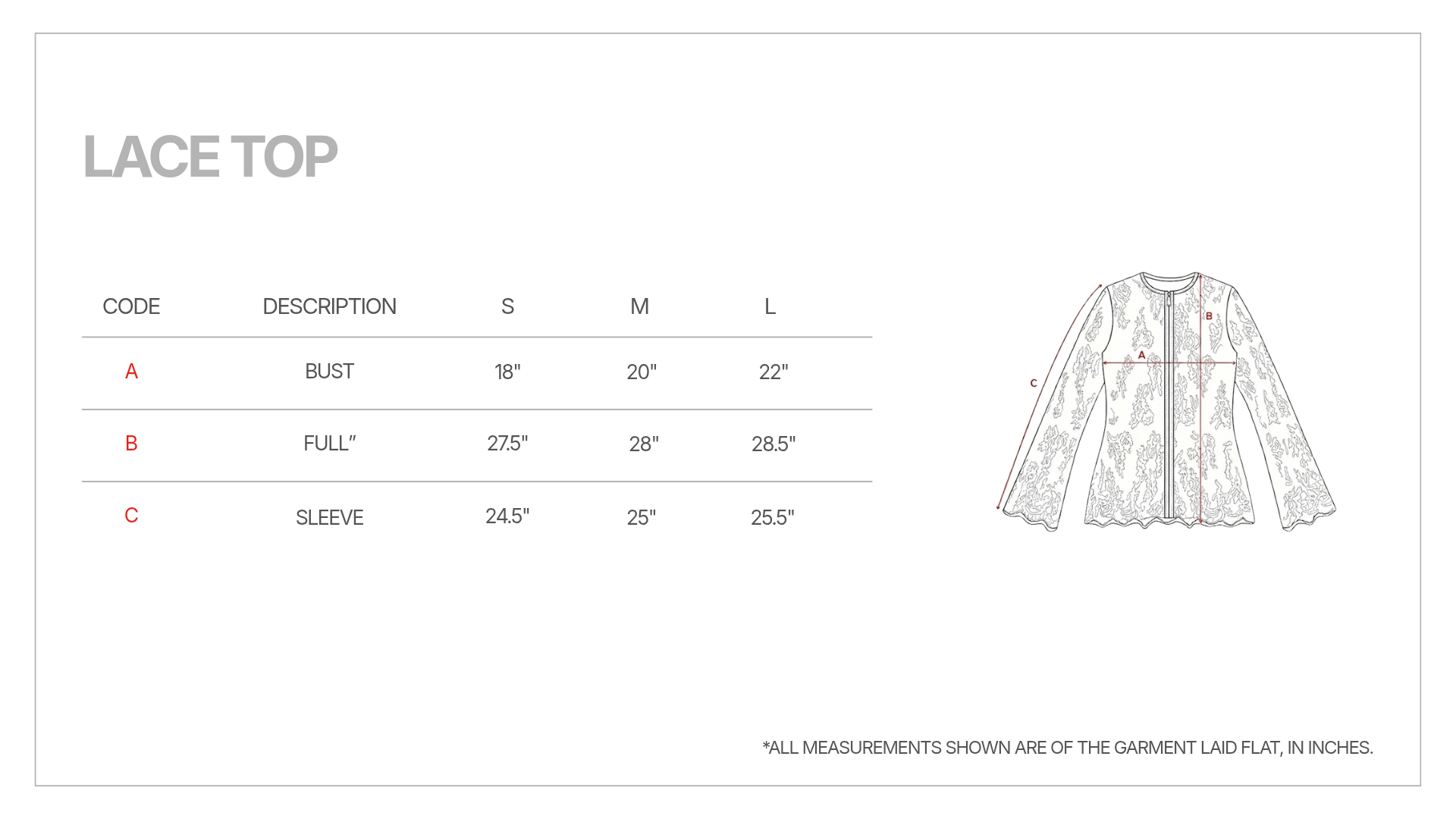 PRODUCT MEASUREMENTS